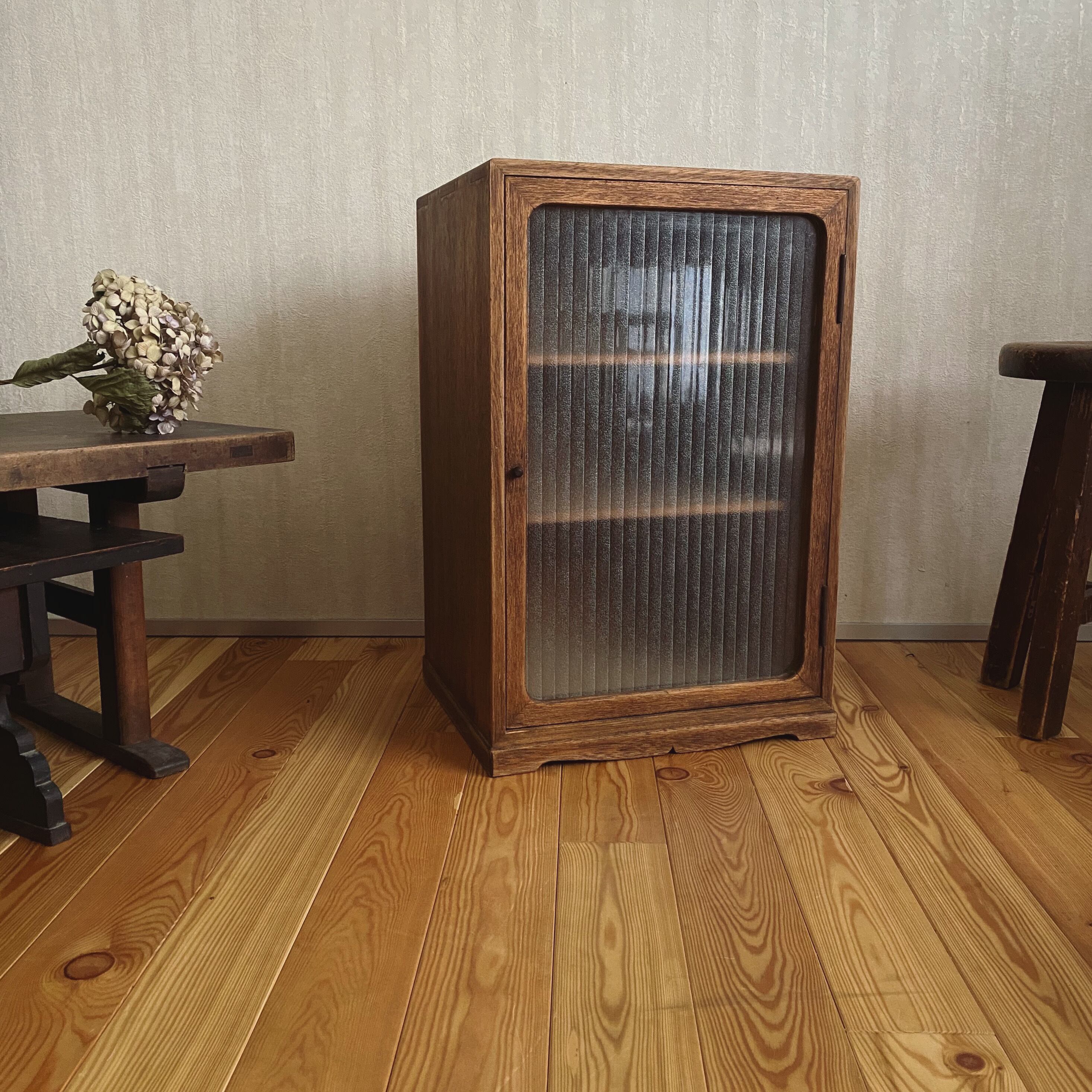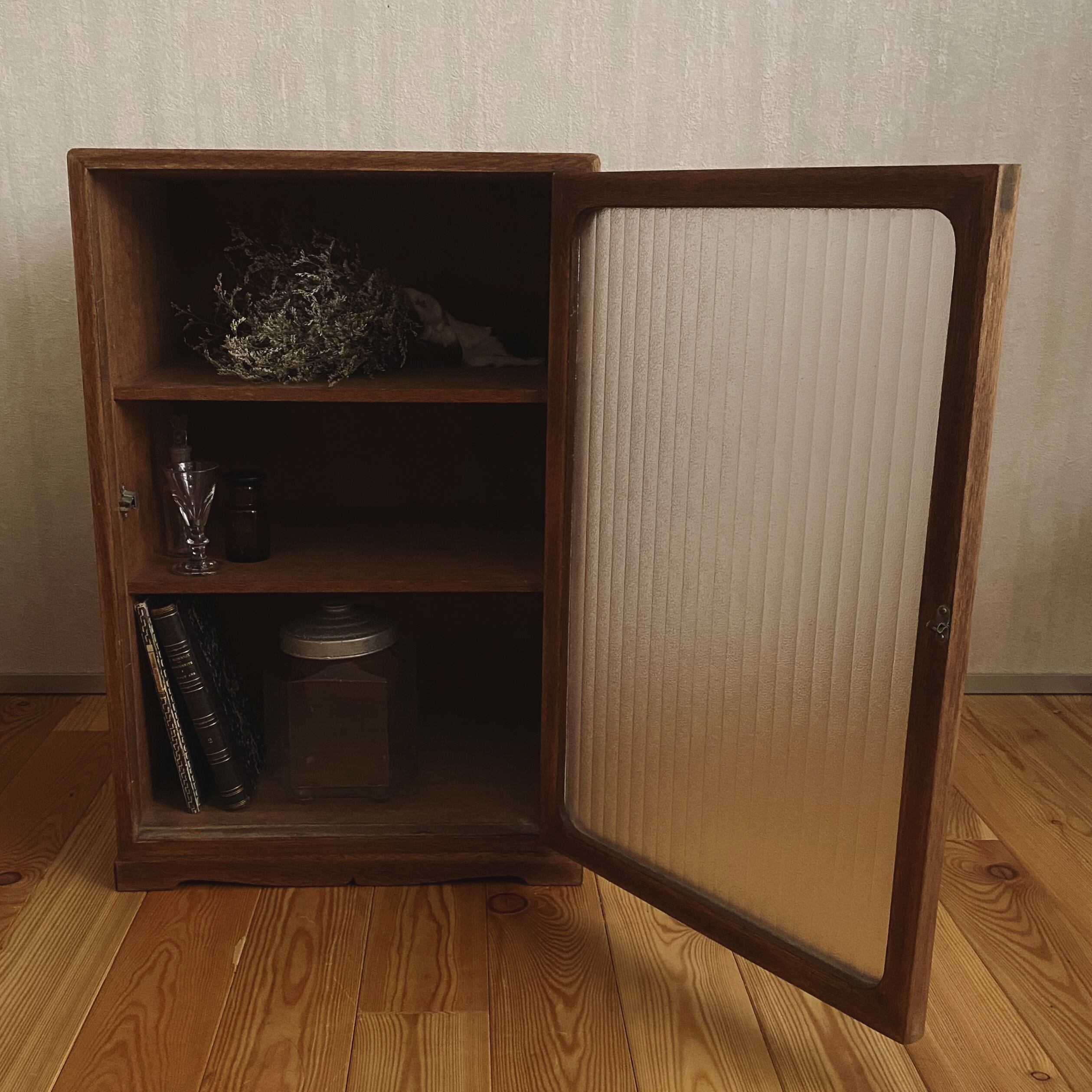 ガラス扉の収納棚