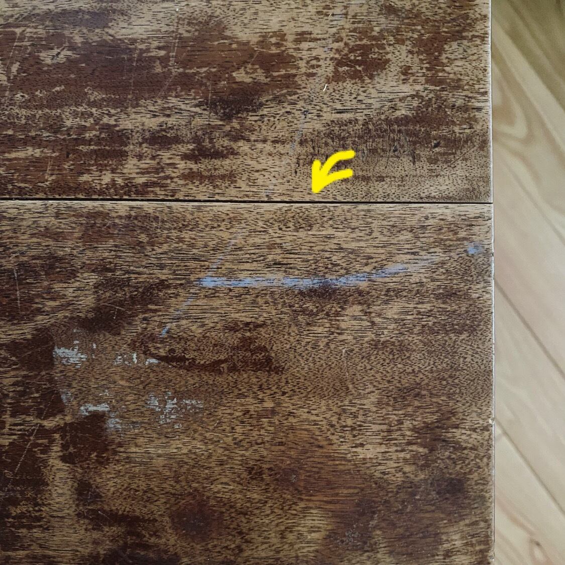 焼け褪せシミ剥げ、天板割れ